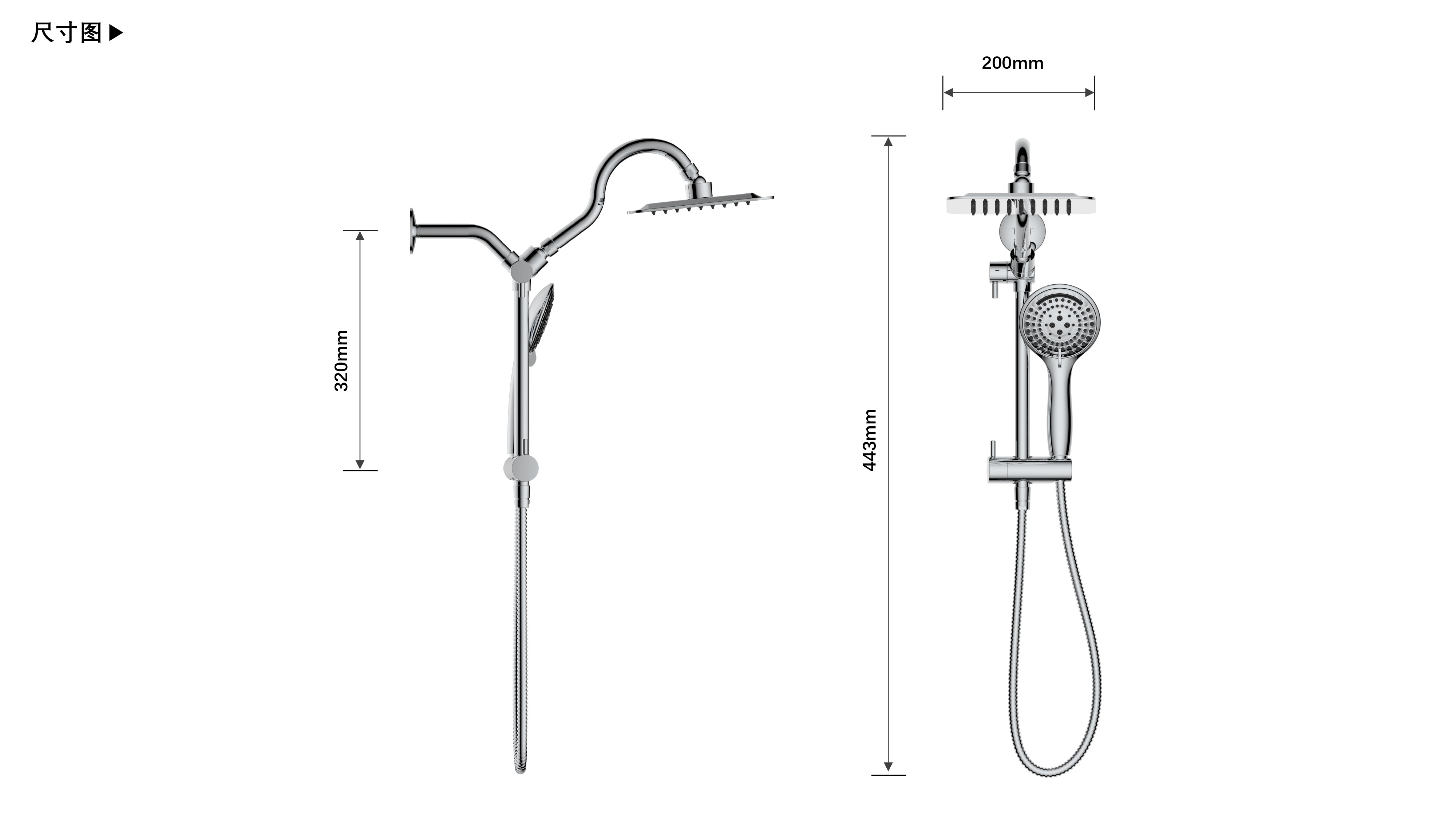 上出水彎管套裝;頂噴內(nèi)置球頭,可實現(xiàn)多角度旋轉(zhuǎn)調(diào)整;把手切換頂噴出水、花灑出水;轉(zhuǎn)動把手調(diào)節(jié)滑座高低