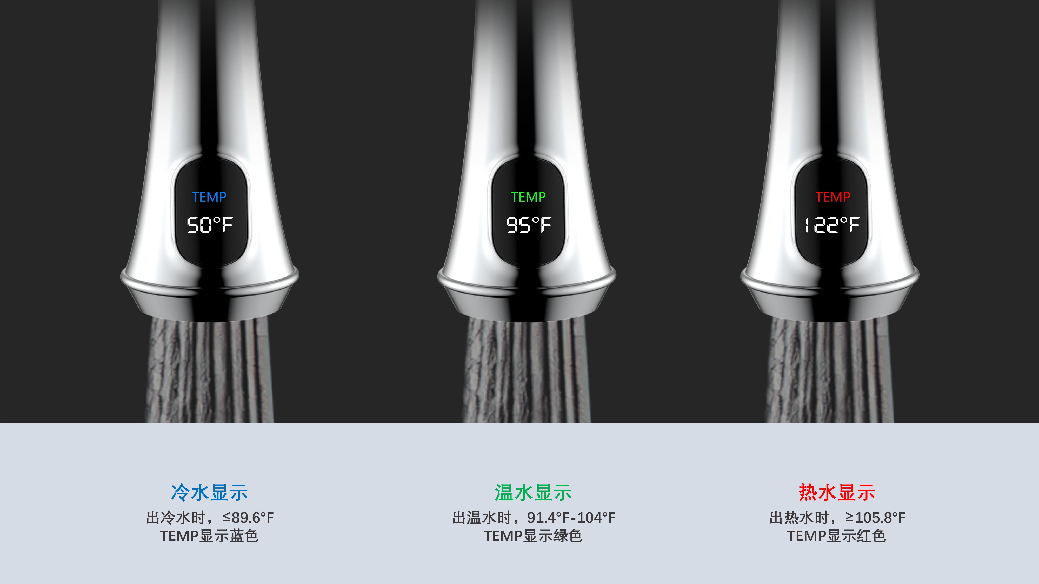 古典廚房龍頭;抽拉頭隨意抽拉多角度使用;采用全密封防水端頭;水力發(fā)電技術,智能芯片溫度數(shù)顯-冷水TEMP顯示藍色、溫水TEMP顯示綠色、熱水TEMP顯示紅色