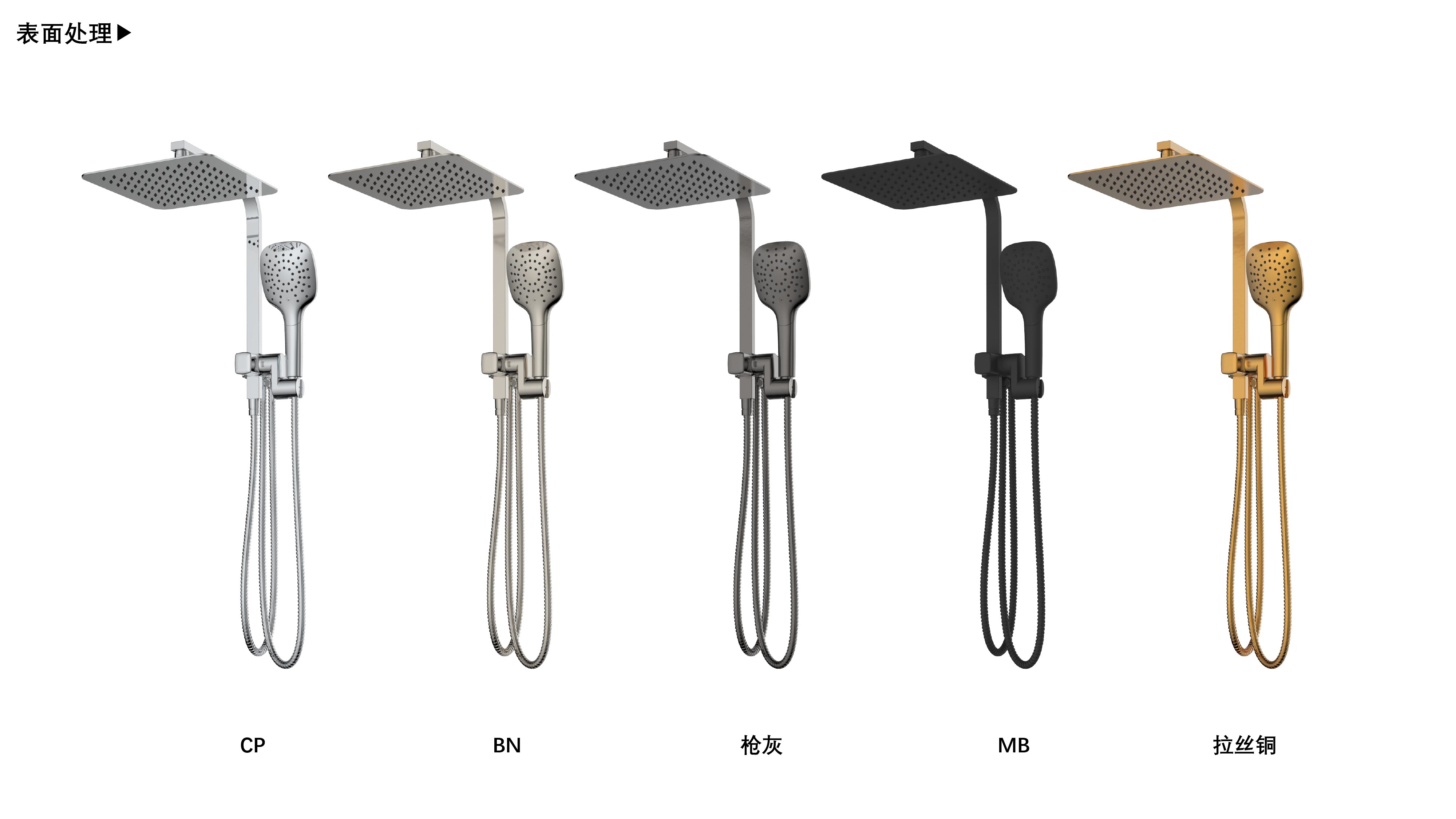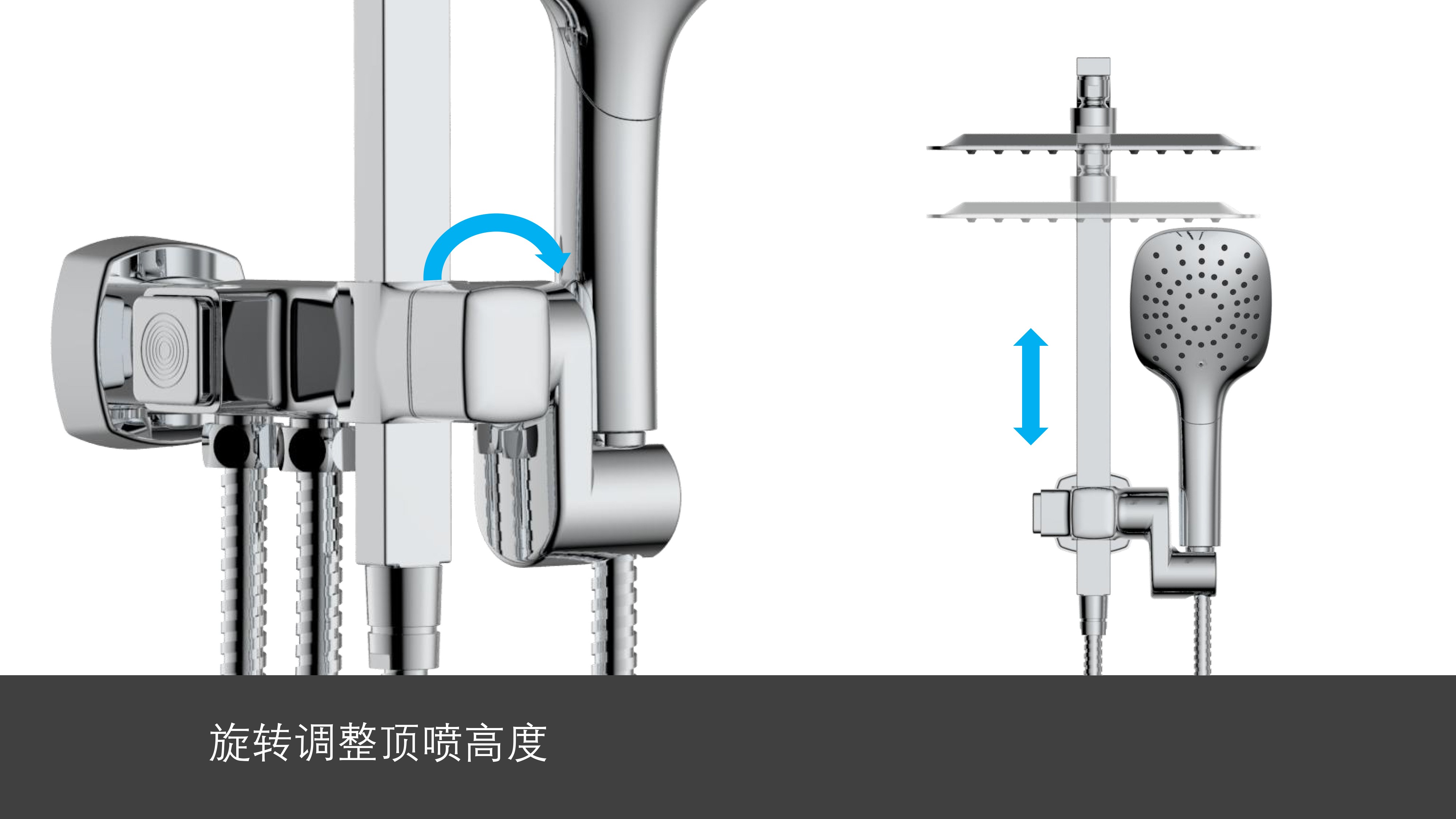方形寬大頂噴;Z字形三通;按壓切換頂噴/花灑出水